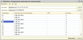 Обработка предназначена для копирования характеристик номенклатуры-источника в номенклатуру-приемник. 1С8.2. УПП. УТ. Тестировалась в УПП и УТ. Подключается как внешняя обработка. Пользователь выбирает номенклатуру-источник (при этом происходит считывание характеристик выбранной номенклатуры), выбирает номенклатуру-приемник, снимает пометку копирования для тех характеристик, в копировании…