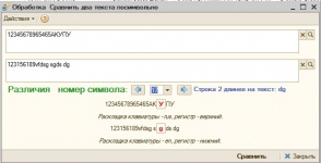 Посимвольное сравнение двух текстов. Внешняя обработка позволяет быстро сравнить два текста. Сразу увидишь, какие символы различаются и почему. Например, символ «o» в английской раскладке и «о» в русской визуально быстро не сравнишь. Отличие от встроенного в 1с сравнения файлов, не…