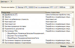 Отчет изменений объектов конфигурации по подсистемам