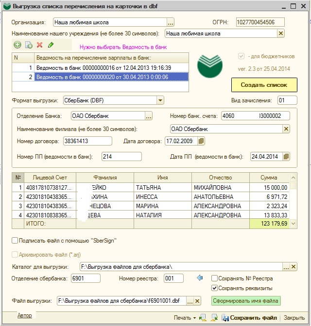 У нас у каждого работника от крыто по 2 карты. 1-я в СБ 2-я в ТКБ. Обработка удобная, но в файл со списком Каждый человек из списка и его сумма попали дважды — 1-й раз на № л/сч в СБ и 2-й раз этти же люди и их суммы на № л/сч в ТКБ, т.е сумма по реестру задвоилась.