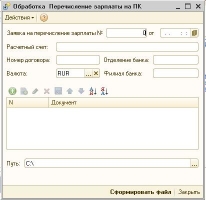 Обработка является аналогом документа "Заявка на перечисление зарплаты" в ЗиК7.7.