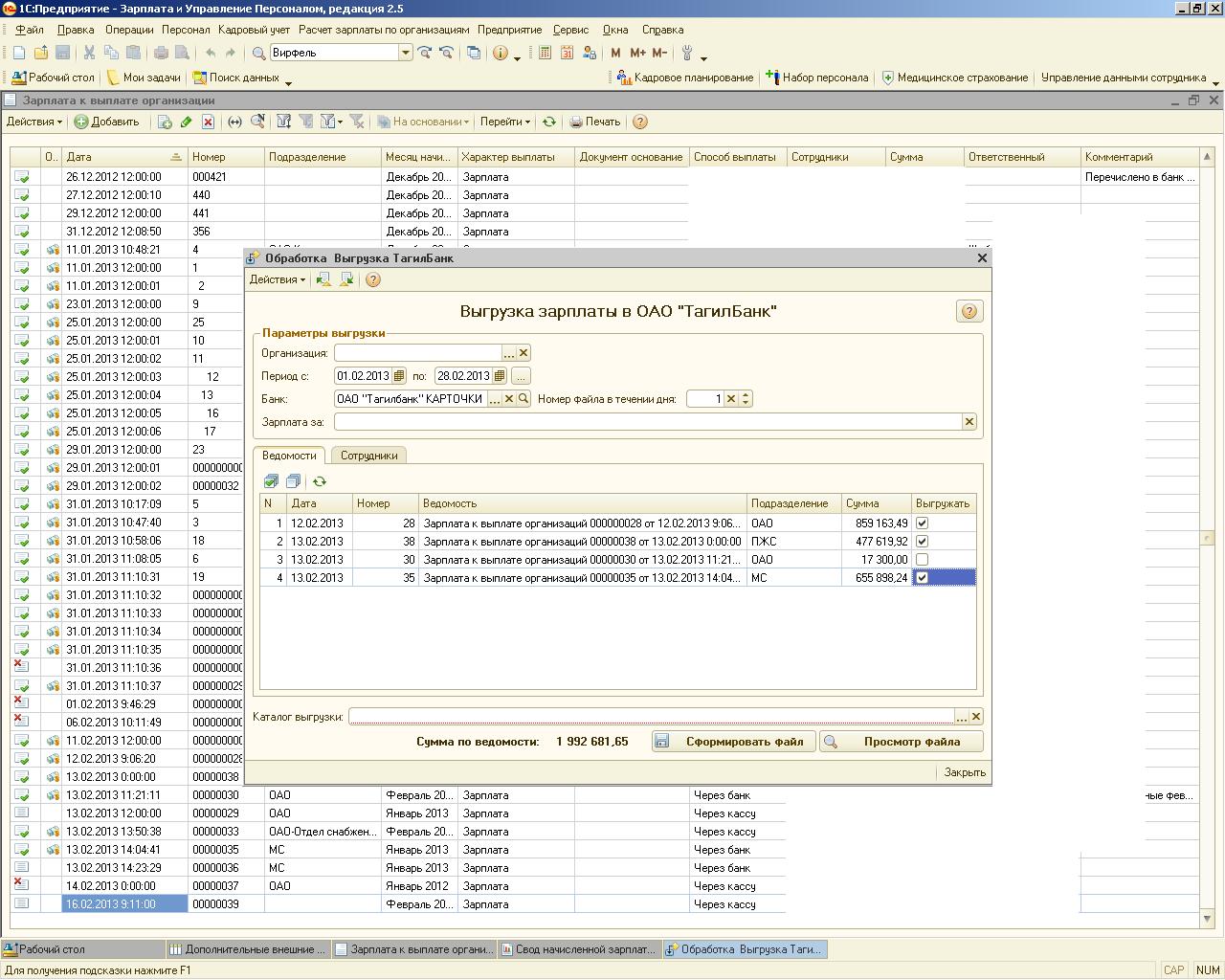Простая обработка для зарплатного проекта ОАО «ТагилБанк» для 1С «ЗУП»