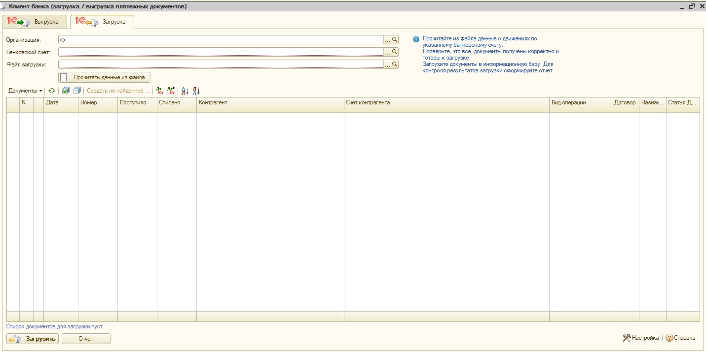 Ищет контрагента по счету и по инн (нужно для физ. лиц). При загрузке создает префикс если номера платежек совпадают (если у организации несколько расчетных счетов).