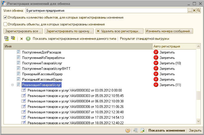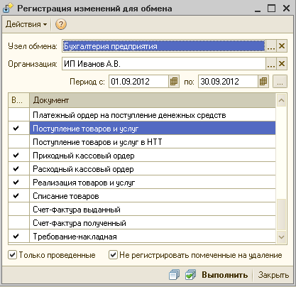 посмотрел. не показывается что уже зарегистрировано. Нельзя выбрать отдельные документы за период, только общим массивом.