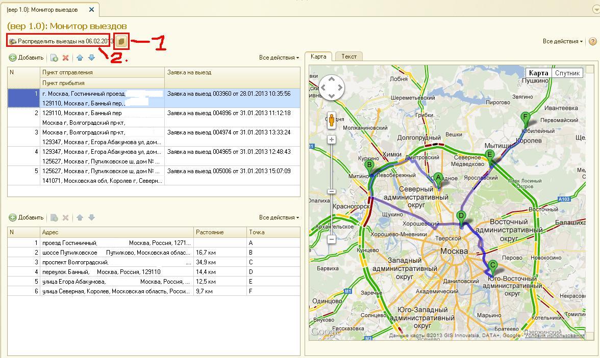Берем заявку на выыезд и добавляем ее адрес в таблицу, после чего делаем