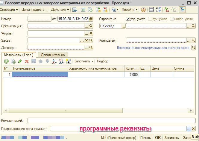 Инересно, а что делать с этим реквизитом. Да, добавился он на форму. Но данные в нем не сохраняются. Закрыл документ,открыл — данных нет. В чем его «нужность»?