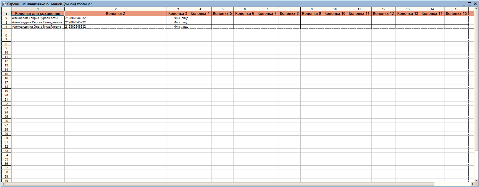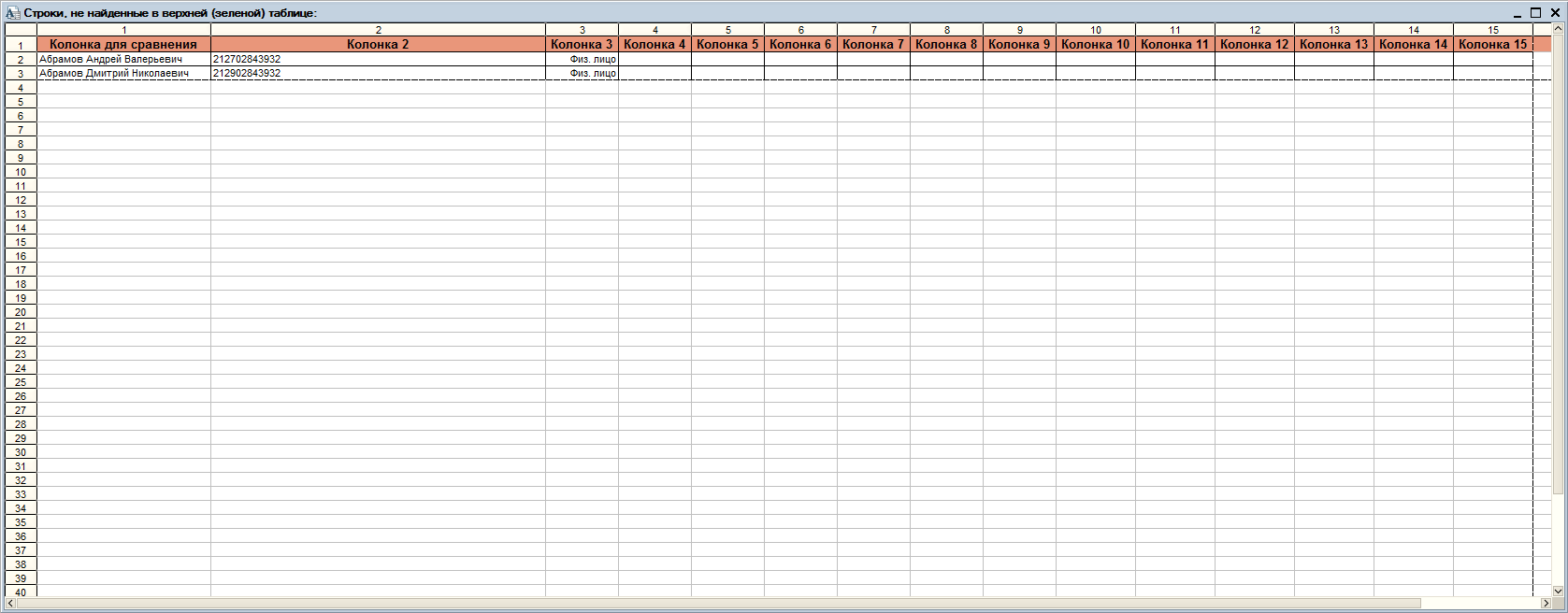Сравнение происходит по колонке с наименованием «Колонка для сравнения». В строке, включая колонку для сравнения может быть до 15 колонок.