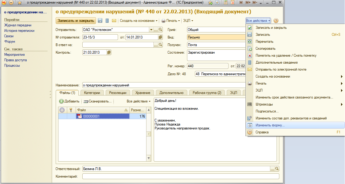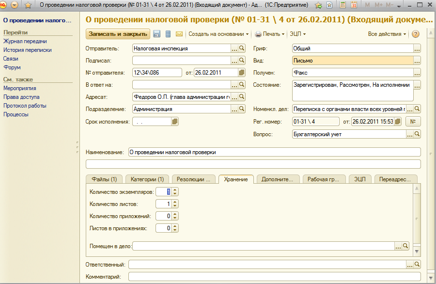 Например очень неудобно было расположение поля Содержание т.к. очень узкое и текст не убирается и плохо читается. Вынесем его на вкладку «файлы» , а поле помещен в дело с вкладки Хранение наоборот вынесем в основное пространство.