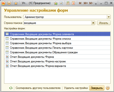Данные настройки будут действовать на конкретного пользователя. Чтобы и у других пользователей были эти изменения в Документообороте реализована обработка «Управление настройками форм»