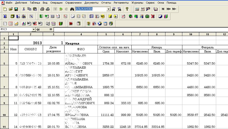 — Формирует отчет по всем видам сумм за выбранный квартал, что позволяет значительно облегчить поиск расхождений с бухгалтерией, кроме того в нем можно увидеть наличие других реквизитов по застрахованного лицу. По ходу формирования отчета, можно задать опцию «удаление нулевых записей», позволяющую удалить нулевые записи для конкретного периода, которые случайно попали при загрузке пачек. (Для формирования отчета достаточно открыть данную обработку из любой конфигурации 1С 7.7).