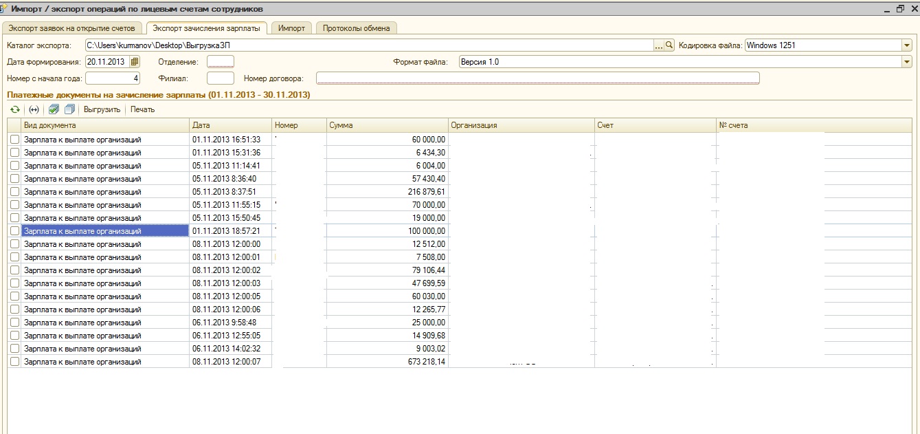 (1) spectre1978, дело в том что в УПП 1.3 есть режим упрощенной выплаты заработной платы (похоже у Вас как раз такой настроен) — это когда заработная плата считается выплаченной при проведении документ «Зарплата к выплате». Второй режим это когда заработная плата считается выплаченной при проведении документа выплаты (РКО или платежное поручение введенное на основании документа «Зарплата к выплате») В этом случае в типовую обработку заполняются платежные документы банка (платежки). Как раз для второго режима эта обработка может быть полезна. Например бухгалтеру нужен второй режим выплаты заработной платы, и в то же время выгрузку зарплаты делать по документам «Зарплата к выплате»