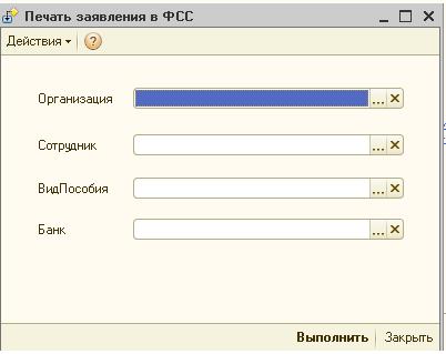 Обработка позволяет выводить печатную форму «Заявление в ФСС на выплату пособия _2012»