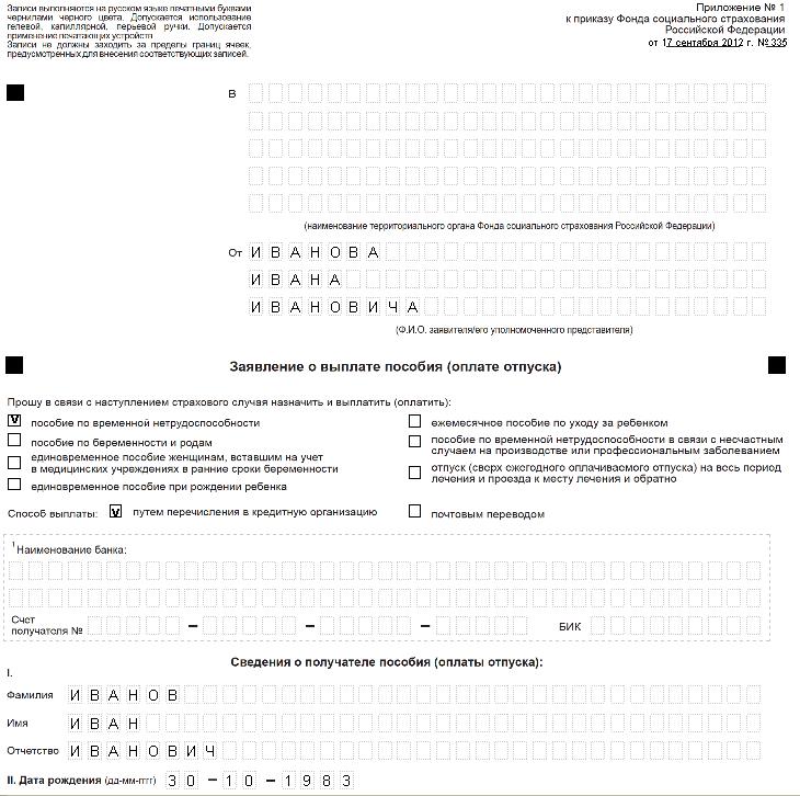 Обработка Заявление в ФСС о Выплате пособия_2012