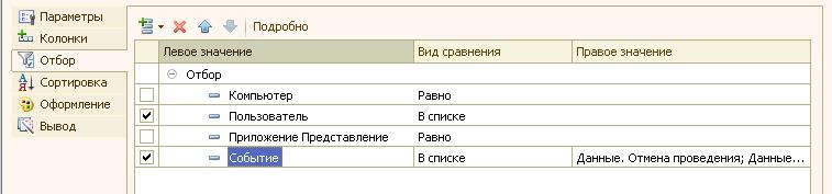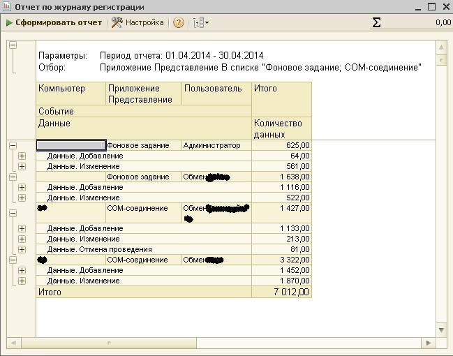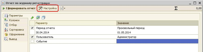 Отчет по журналу регистрации (статистика работы пользователей) (на СКД)