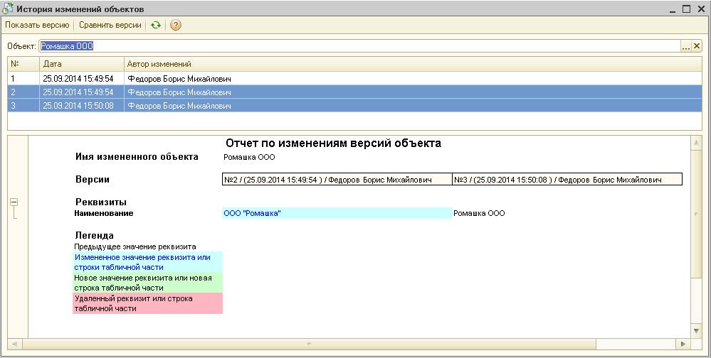 Отчет работает, но нужно поменять порядок сравнения версий. А то сейчас получается если в документ добавили новую строку в таб. часть — отчет показывает как-будто ее наоборот удалили.