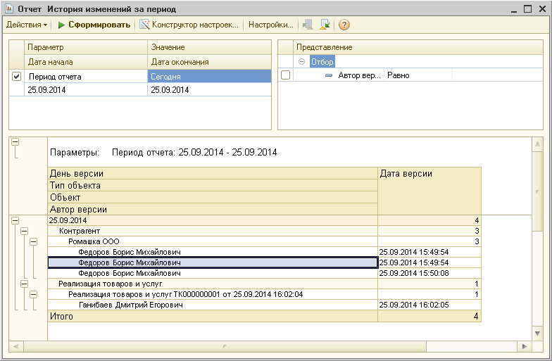 Скажите можно ли данным отчетом сделать выборку изменений совершенных например с 18.07.2017 по 18.07.2017