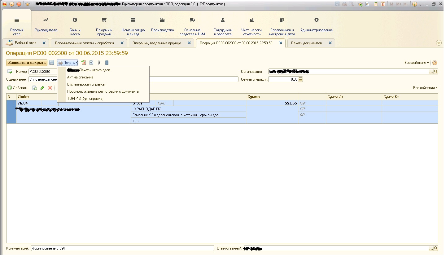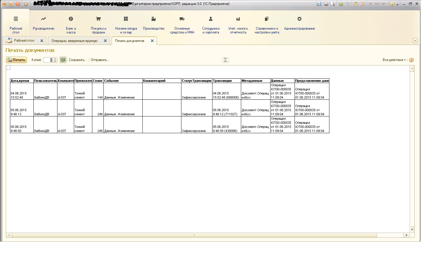 Присутствуют те же самые колонки, что и в журнале регистрации.