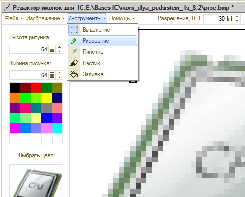 Итак, вашему вниманию предлагается растровый редактор, который может работать с небольшими изображениями (иконками).