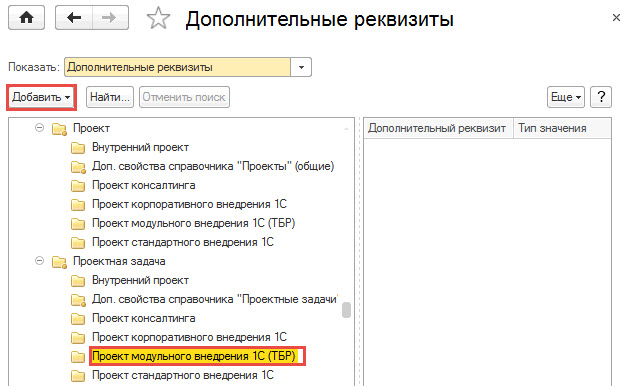 Добавим новый дополнительный реквизит для проектной задачи определенного вида.