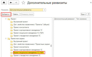 - Создать дополнительные реквизиты и сведения для проектов и проектных задач.