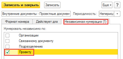 На закладке «Независимая нумерация» указываем, что документы нужно нумеровать независимо по проекту.