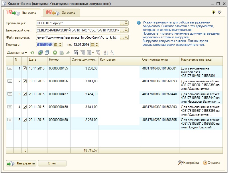 Выбираются все Платежные поручения по начисениям ЗП сотрудникам, и нажимаем выгрузить.