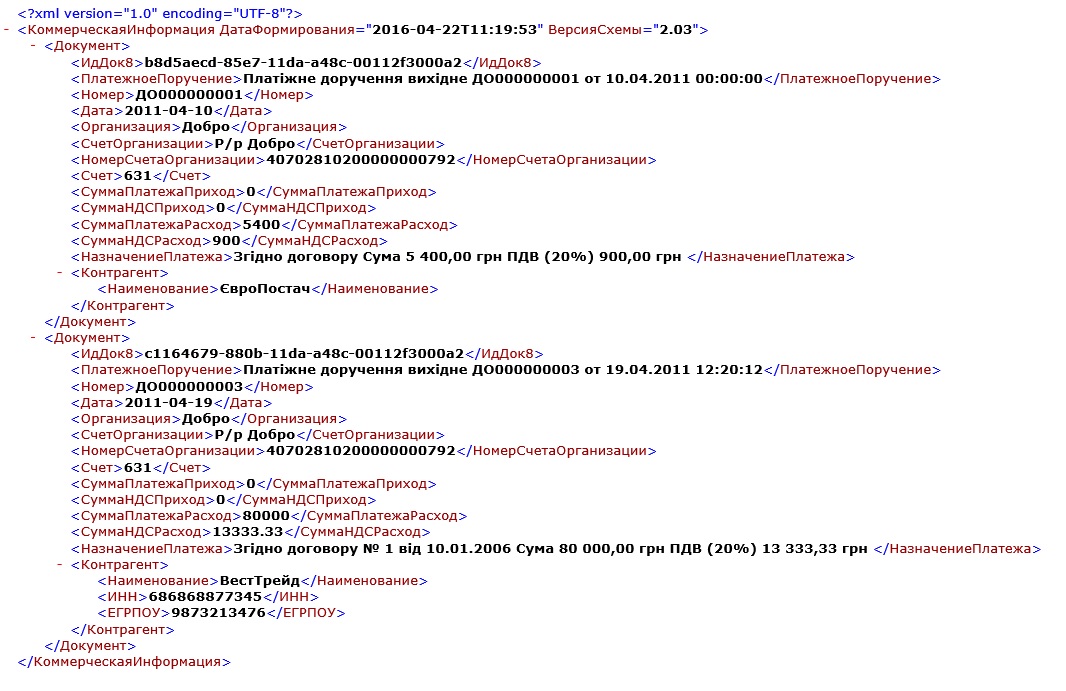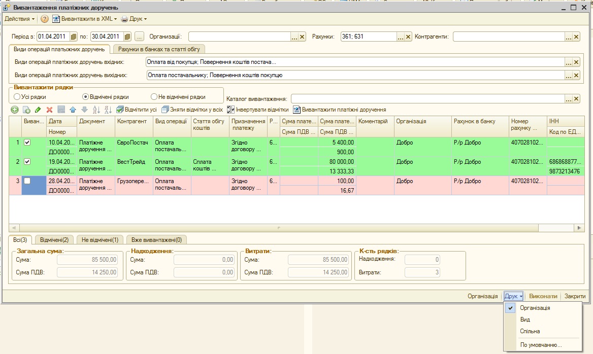 Выгрузка платежных поручений исходящих и входящих в xml. Печать платежных поручений. Есть украинский язык.