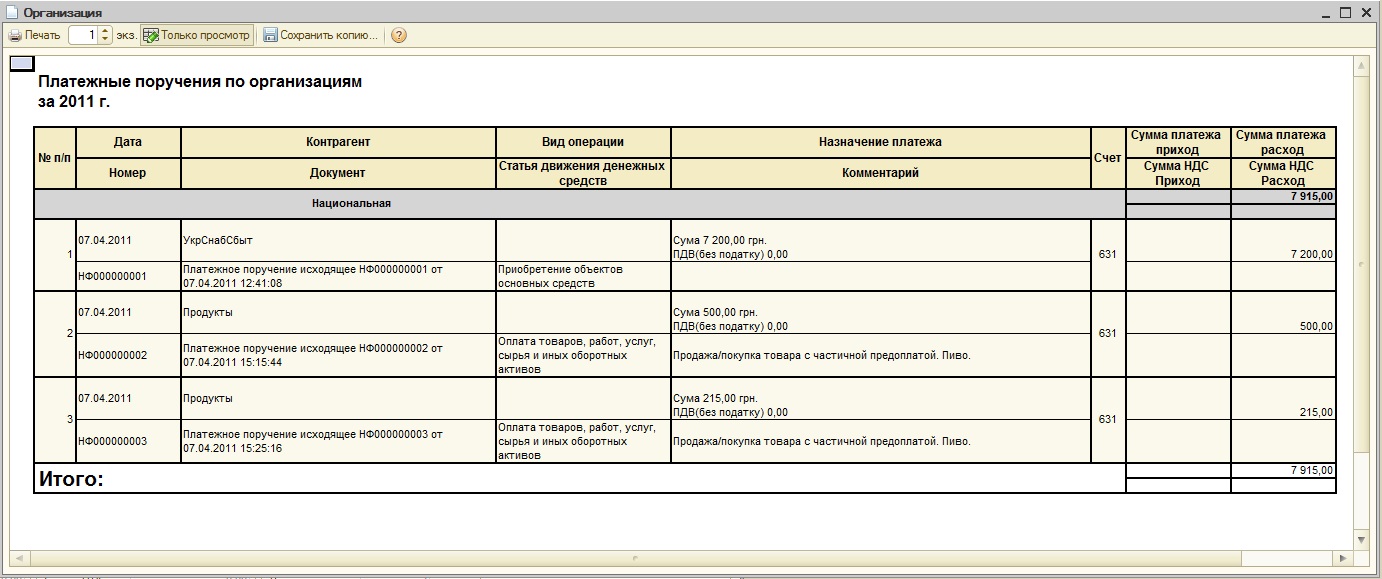 P.S. Данные берутся из табличной части РасшифровкаПлатежа. Данные взяты из демо баз «Управление производственным предприятием для Украины» и «Бухгалтерия для Украины». Есть украинский язык.