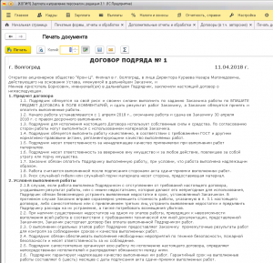 Внешняя печатная форма к документу Договор (работы, услуги) (Договор ГПХ), которая может служить шаблоном для разработки своей формы договора.