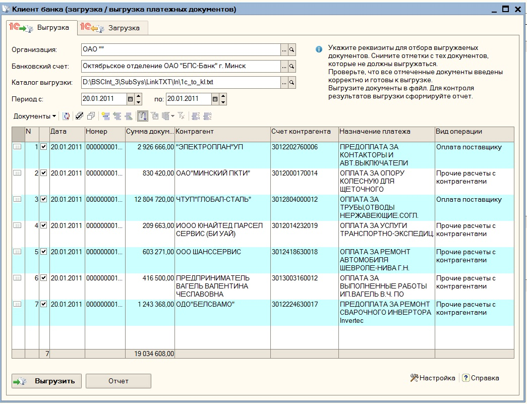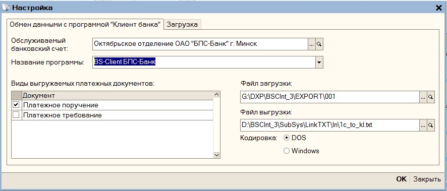 Обработка позволяет выгружать документы "Платежное поручение исходящее" в программу клиент-банк "БПС-Банк", а также загружать из него выписку.